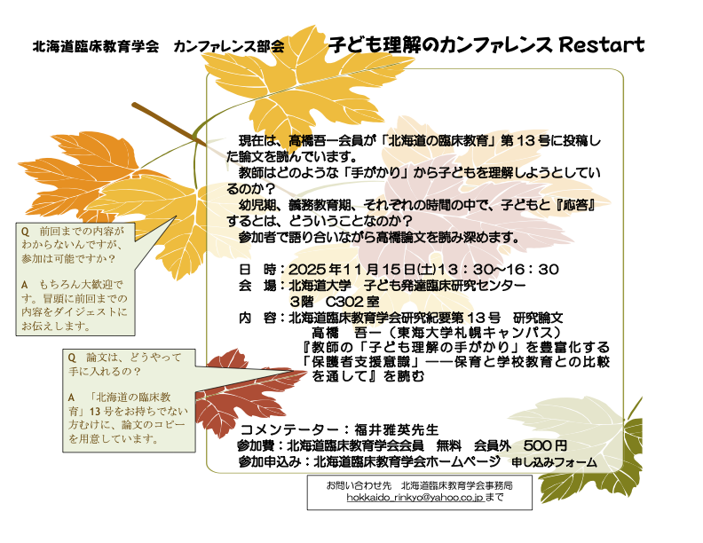北海道臨床教育学会 カンファレンス部会 子ども理解のカンファレンスRestart -