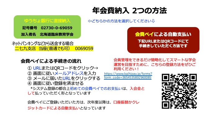 会費ペイにご登録いただいた方は、次年度以降は、口座振替かクレジットカードによる自動支払いとなっています
